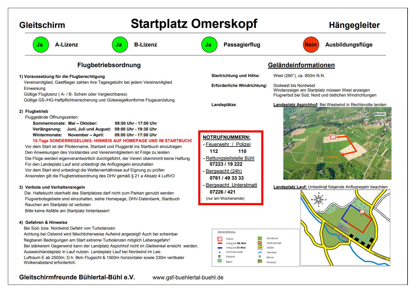Unser Startplatz am Omerskopf befindet direkt an der Landstraße von Neusatzeck nach Untersmatt am ehemaligen Aussichtspunkt Richtung Achern/Straßburg.